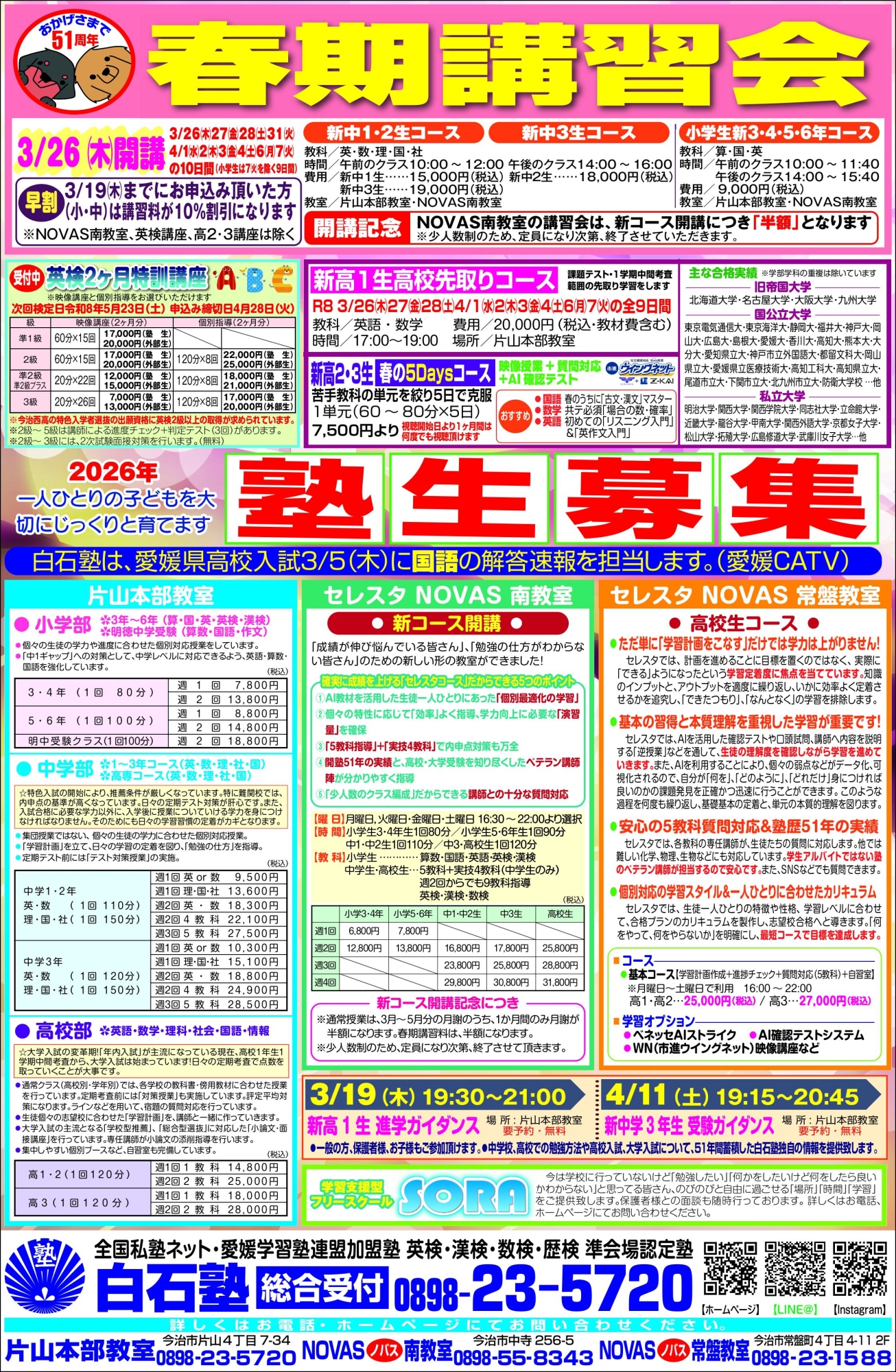 新高1進学ガイダンス、新中3受験ガイダンスのお知らせ