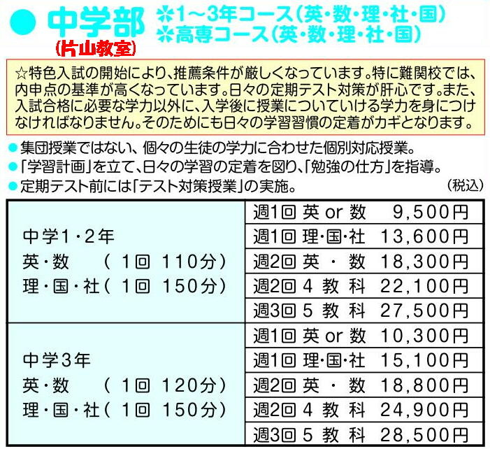 【集団個別対応クラス】中1~中3 / 片山本部教室