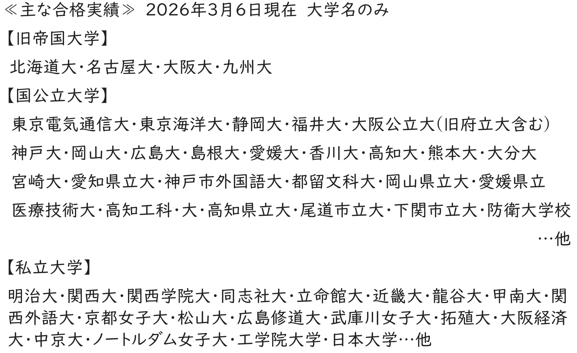 残念ながら、学校の授業に追われているだけでは、難関志望校には合格できません。それは教育機会に恵まれた都会の生徒たちと地方の生徒たちの大学の進学実績を見れば一目瞭然です。都会の生徒たちと伍していくために、良質な教育の提供に努めています。
