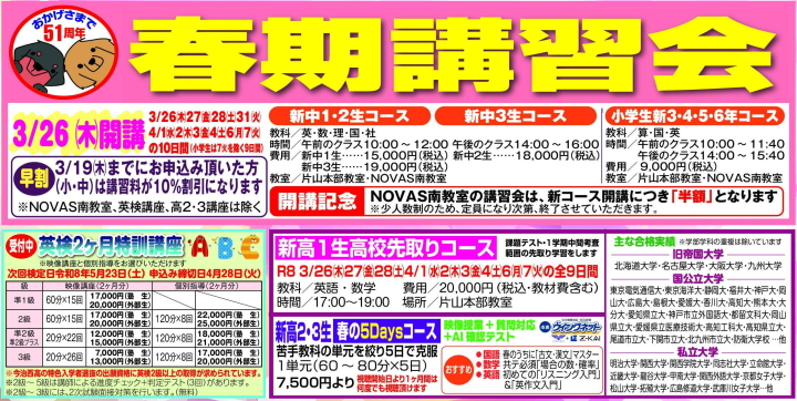 *3月26日(木)より春期講習会を開講します。
