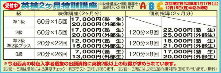 ☆次回の英語検定の日程は、令和8年1月17日(月)です。検定申し込み締め切りは12月15日(月)です。